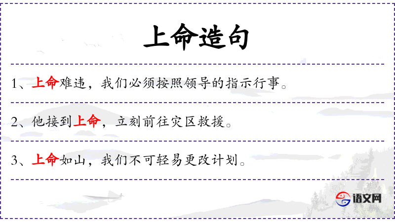 上级的命令,特指君命; 谓长寿; 崇尚军令。上,通"尚"。