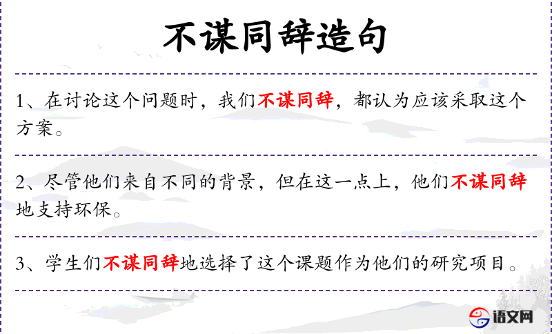 - 相关成语:不谋而合(与不谋同辞意思相近,表示没有事先商量就一致)