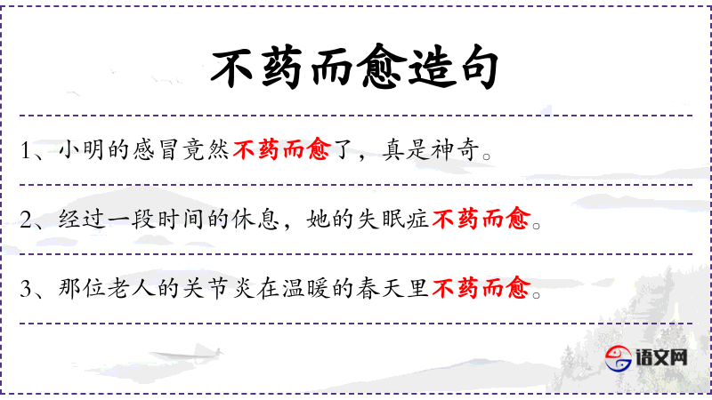 - “不药而愈”这个成语在**文化中常见,强调自然恢复的力量。
