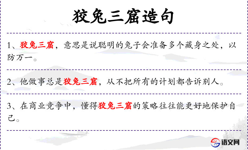 3. 【狡兔三窟】 - 窟:洞穴。狡猾的兔子准备好几个藏身的窝。比喻隐蔽的地方或方法多。