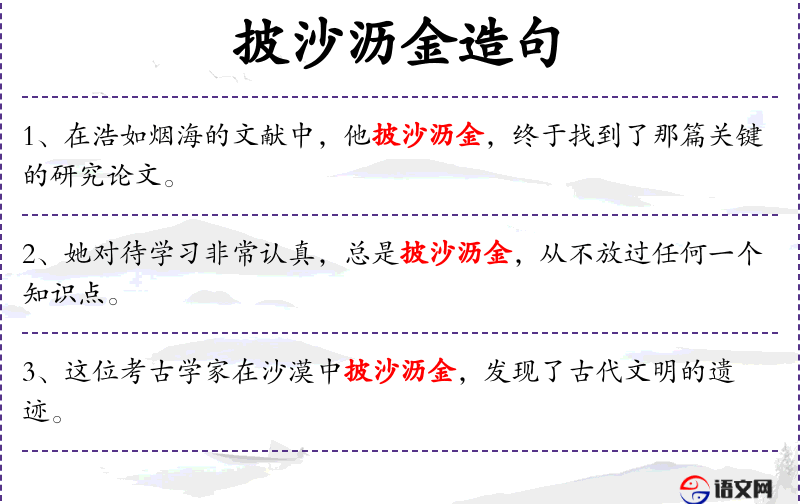 句子:“她对待学*非常认真,总是披沙沥金,从不放过任何一个知识点。”