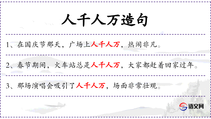 - 人千人万:形容人数非常多,类似于“人山人海”。