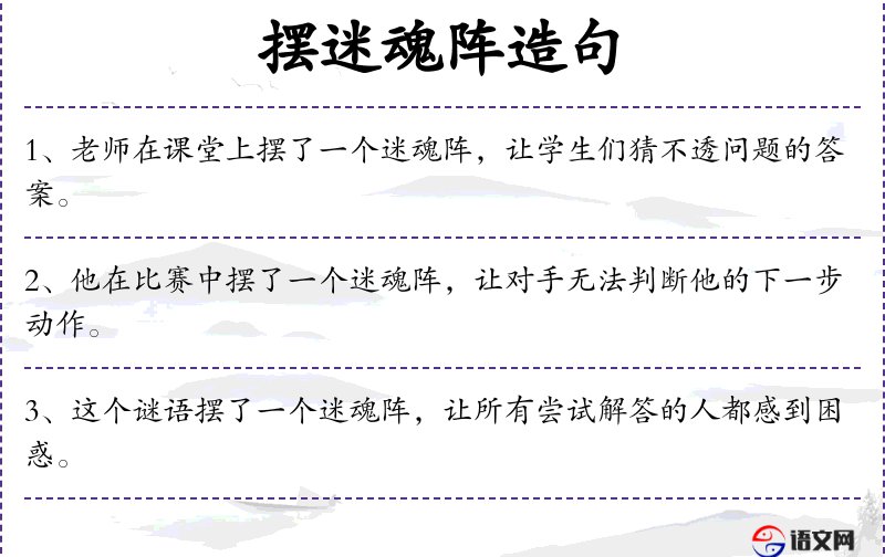 句子:“老师在课堂上摆了一个迷魂阵,让学生们猜不透问题的答案。”