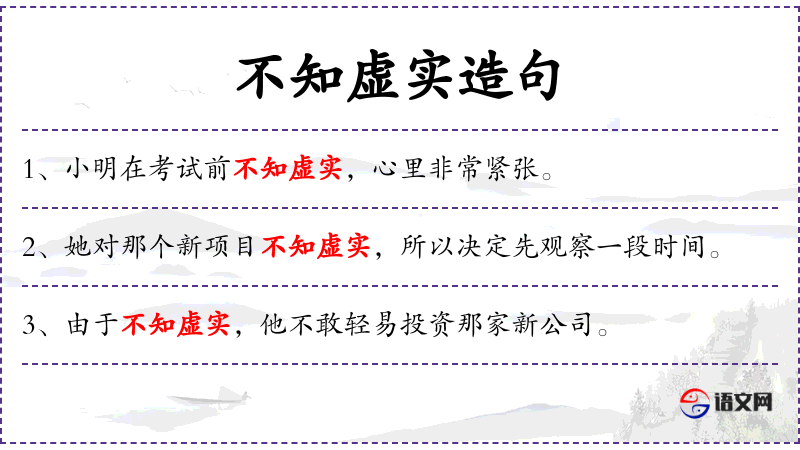 1. 【不知虚实】 虚实:或虚或实,情况。泛指不掌握或虚或实的内部情况。