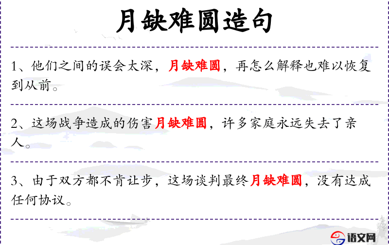 3. 【月缺难圆】 - 比喻关系一旦破裂,就很难挽回。