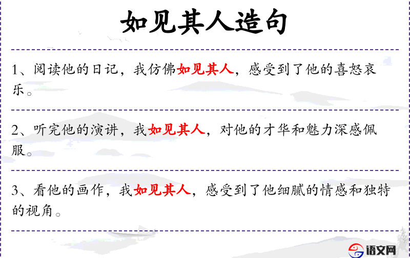 - 如见其人:成语,意思是好像亲眼见到了那个人。