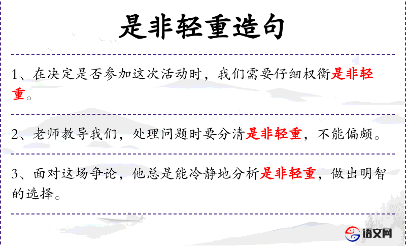 3. 【是非轻重】 正确和谬误,事情的重要与不重要。