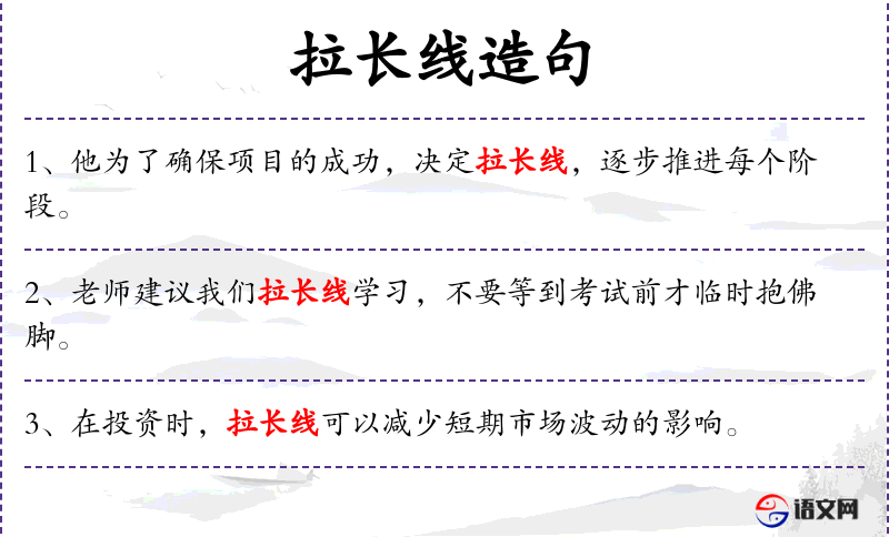 - 拉长线:比喻长期持有投资,不追求短期收益。