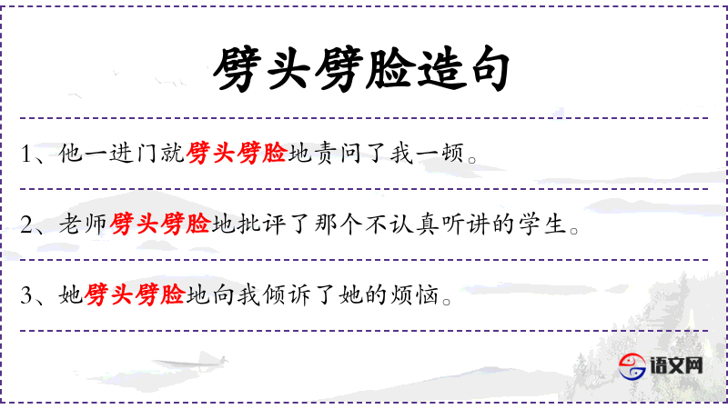 - 劈头劈脸:形容说话直接、不加掩饰,通常带有强烈的情感色彩。