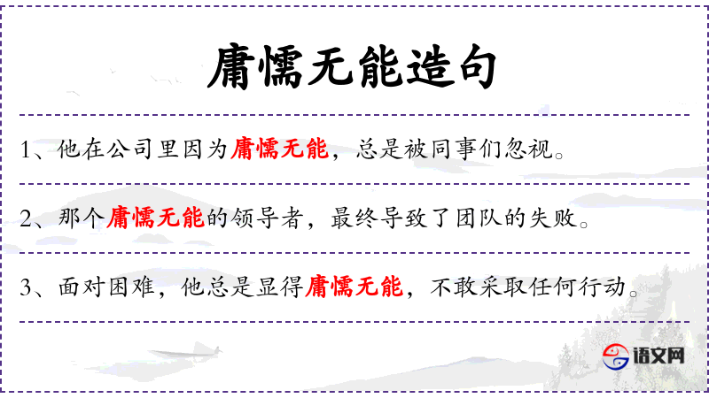 - 庸懦无能:软弱无能、胆小怕事