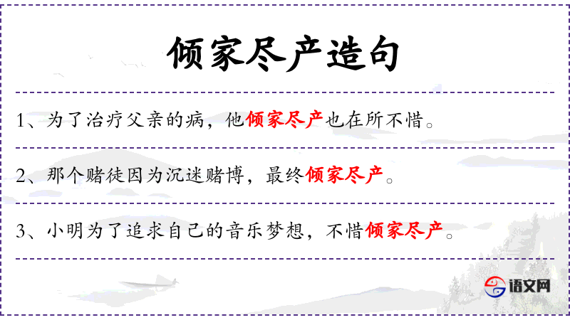 句子:“那个赌徒因为沉迷赌博,最终倾家尽产。”