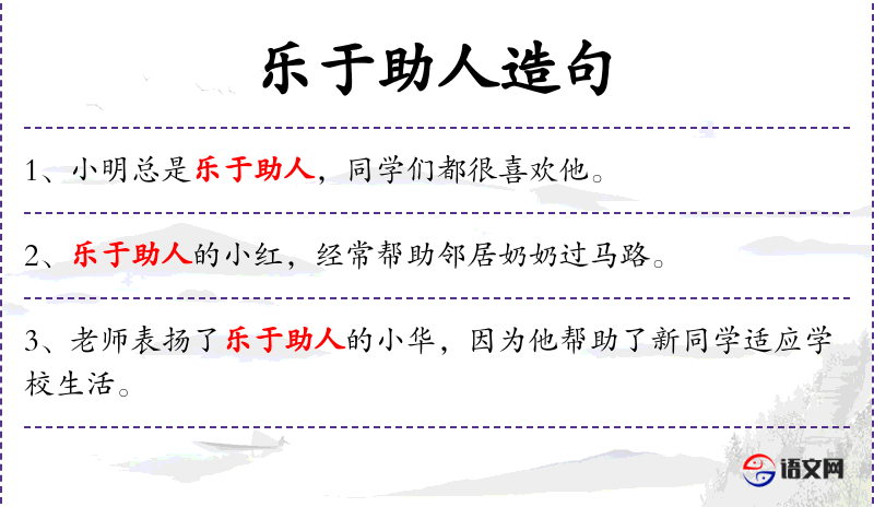 - 乐于助人的:形容词短语,表示喜欢帮助他人。