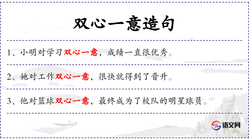 - 对音乐双心一意:成语,意为全心全意地投入音乐。