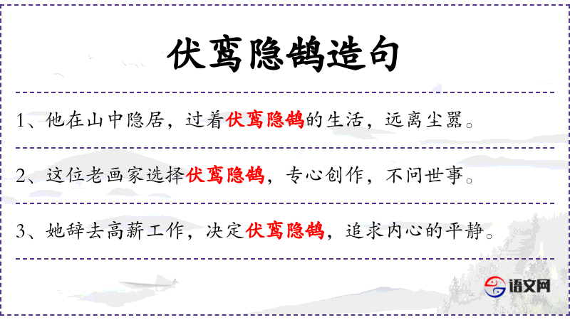 - 伏鸾隐鹄:这个成语源自**古代,反映了古人对隐居生活的向往和赞美。