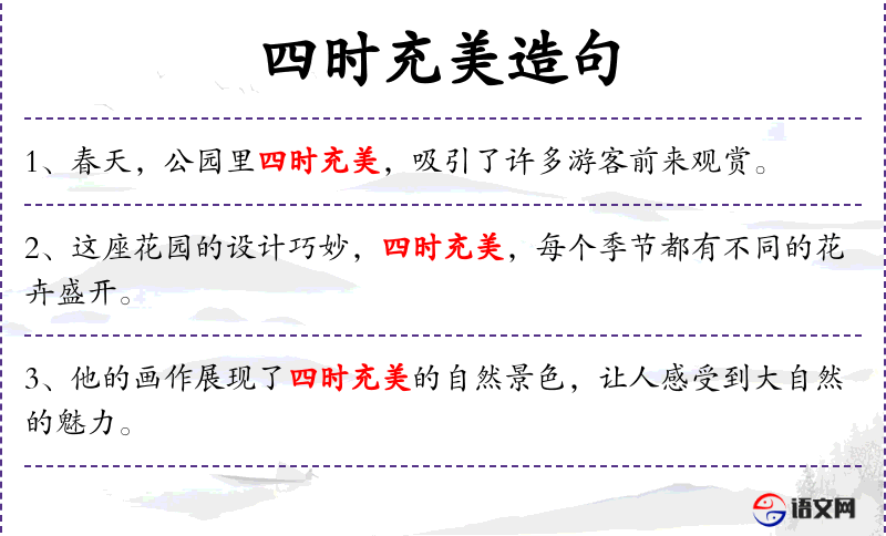 - 四时充美:四季都充满美丽。