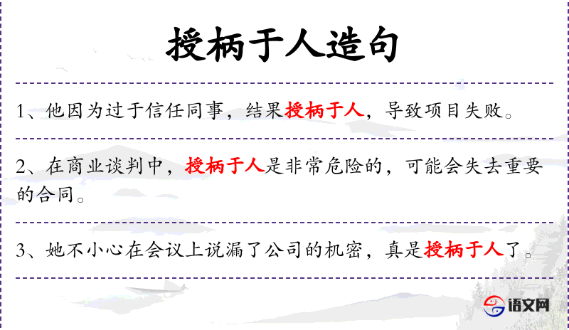 “授柄于人”是一个中文成语,源自古代的剑术用语,比喻给人以可乘之机。这个成语反映了中文中的一种文化观念,即在竞争或对抗中需要谨慎和策略。