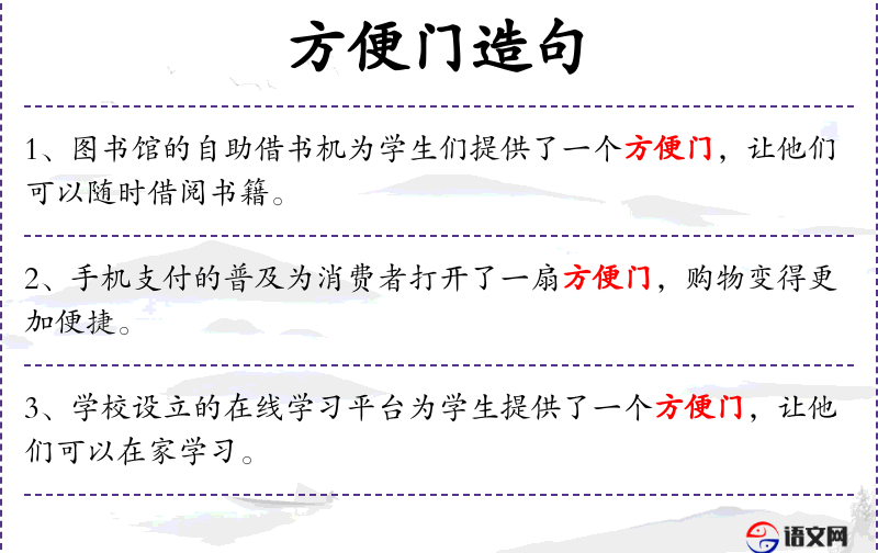 句子中的“方便门”使用了比喻手法,这在汉语表达中常见,用以形象地描述事物的特点。这种表达方式在文化交流中能够增加语言的生动性和趣味性。