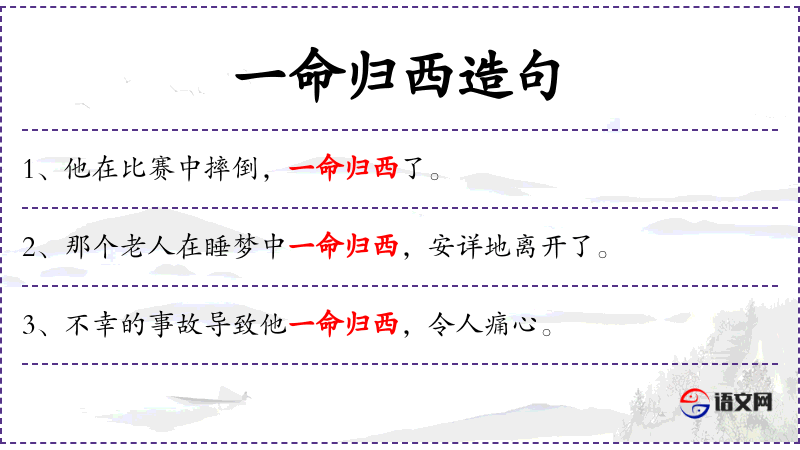 - “一命归西”带有一定的委婉和含蓄意味,避免直接提及死亡。