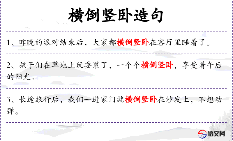 4. 【横倒竖卧】 - 躺卧凌乱的样子。