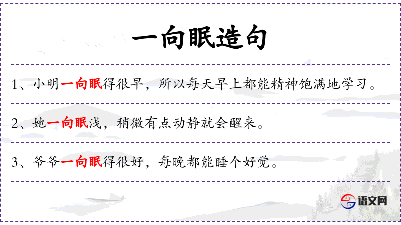 1. 【一向眠】 - 睡卧时不翻来复去。谓安睡。