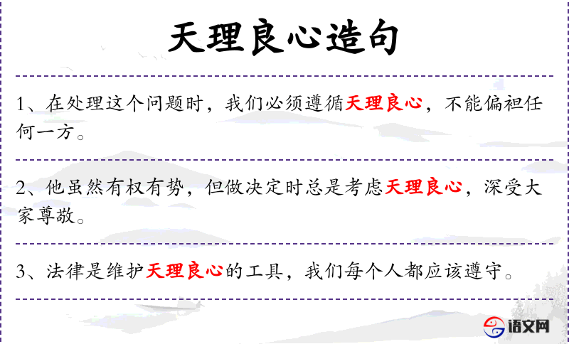 - 天理良心:指道德和正义的标准,良心是指内心的道德判断。