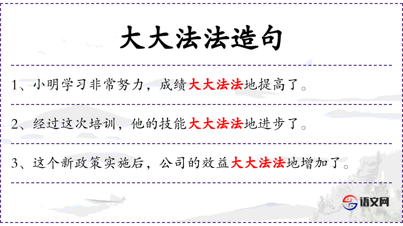 句子:“这个新产品的推出,让公司的市场份额大大法法地扩大了。”
