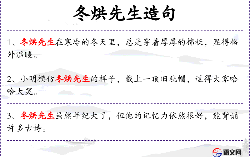 - “冬烘先生耐心地逐一回答了小华关于古代礼仪的问题。”