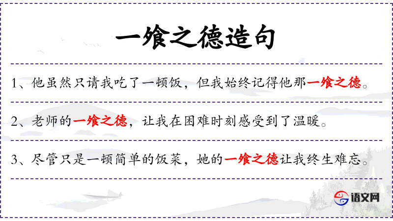 1. 【一飧之德】 - 飧:简单的饮食。一顿饭的恩德。比喻微小的恩惠。