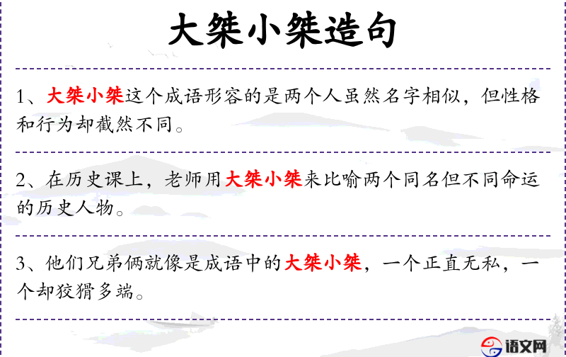 - 大桀小桀:一个成语,形容两个人名字相似但性格和行为截然不同。