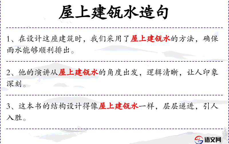 - 英文:When dealing with complex problems, he always manages to find the most effective solution path, just like building a gutter on the roof that channels water smoothly.