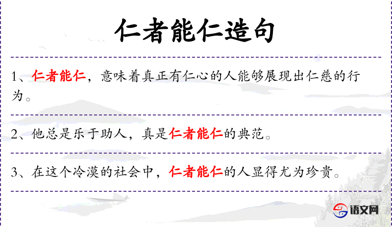 - 不同句式:“仁者不仅具备仁爱之德,更将仁爱融入生活态度。”
