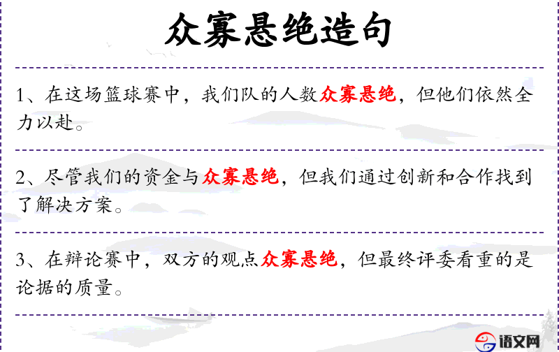 - 众寡悬绝:形容数量相差极大。
