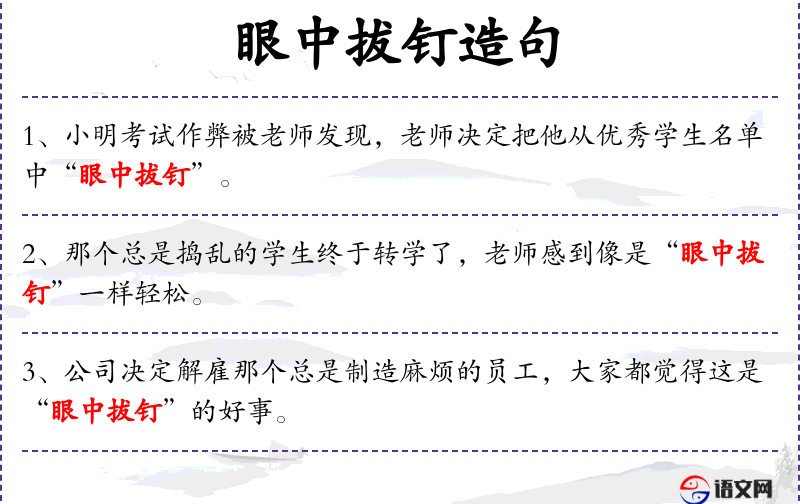 5. 【眼中拔钉】 - 比喻除去心中最痛恨的人。
