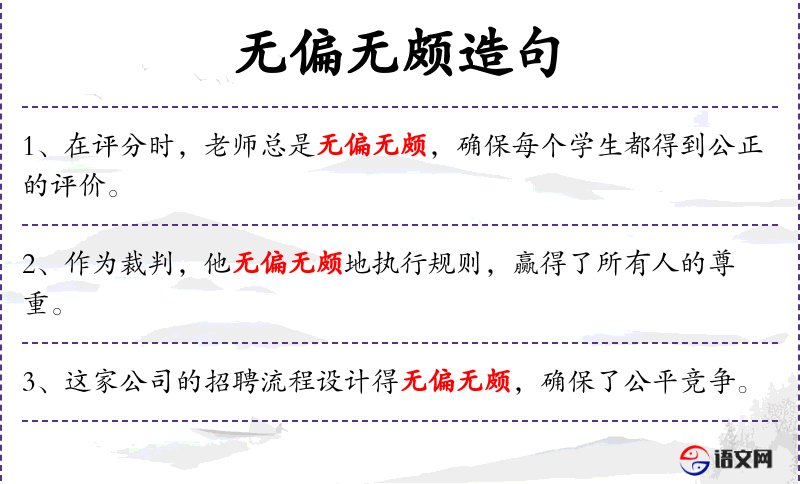 - 无偏无颇:没有偏见,公正无私。