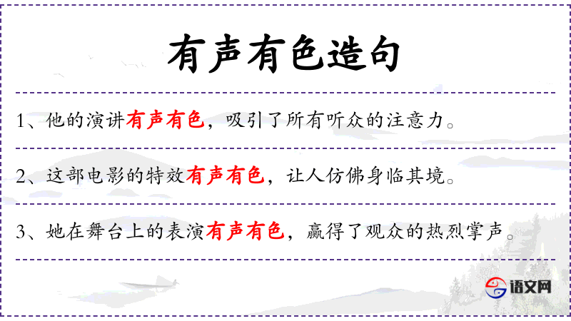 4. 【有声有色】 形容说话或表演精彩生动。
