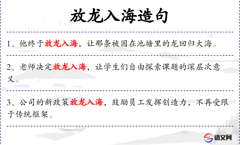 - 放龙入海:这是一个比喻,意味着让强大的力量自由发挥,不加限制。