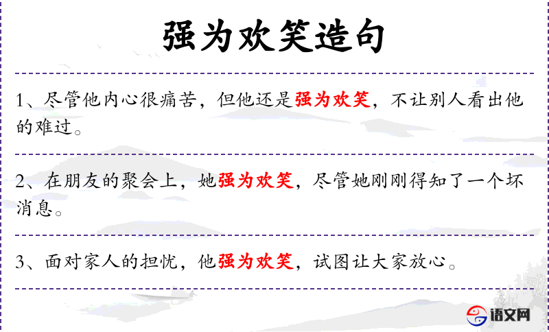 - 礼貌用语:“强为欢笑”可以被视为一种礼貌的行为,因为它体现了对他人感受的考虑。