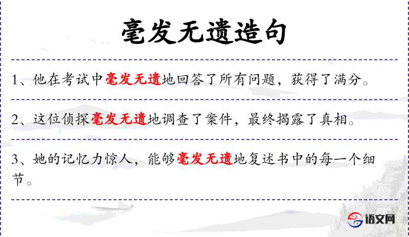 毫发:细毛和头发,指极微小的数量;遗:疏漏。一点遗漏都没有。形容非常细致周密。