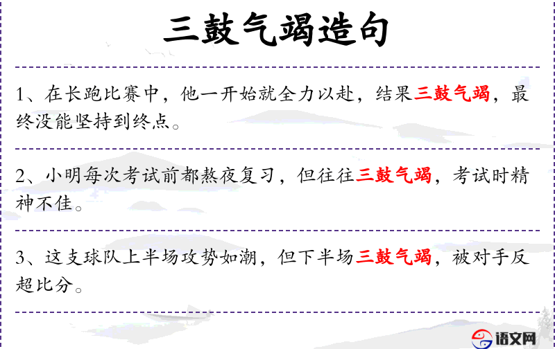 1. 【三鼓气竭】 竭:尽。指力量一再消耗,已经衰减耗尽。