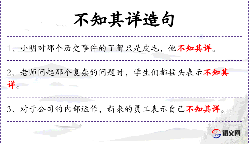 1. 【不知其详】 不知道他的详细情况。
