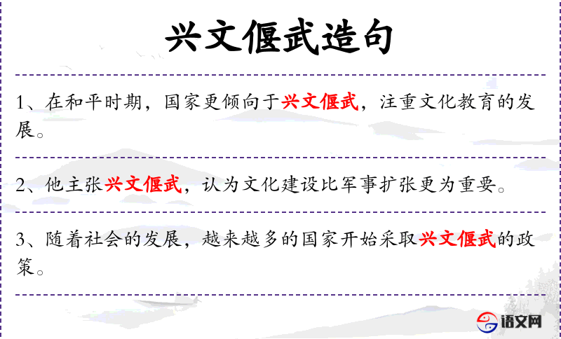 - 宾语:兴文偃武、文化建设比军事扩张更为重要