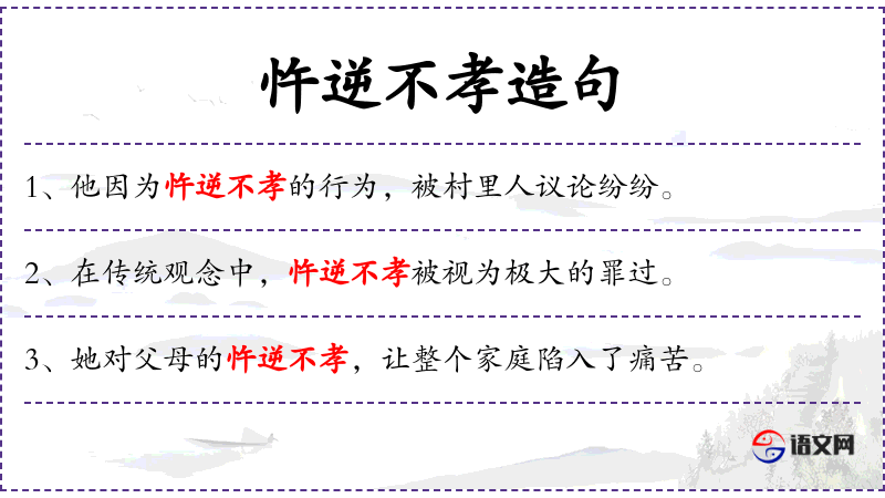 - 忤逆不孝的行为在社会中受到谴责。