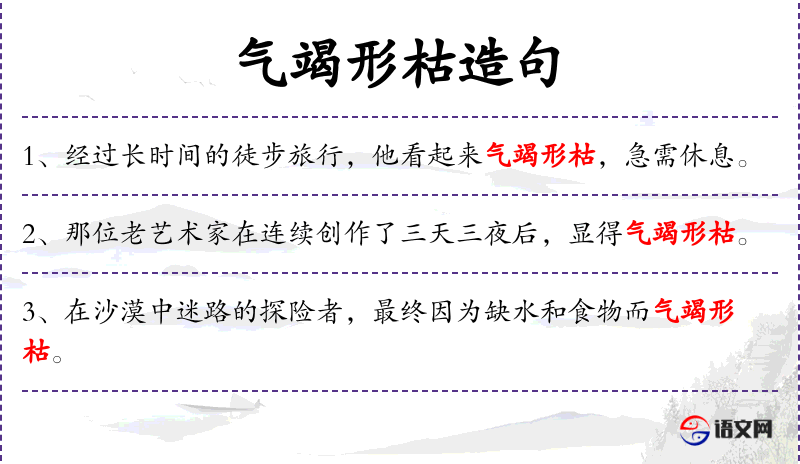 3. 【气竭形枯】 - 竭:尽;枯:枯槁。力气用尽,形容枯槁。形容病人生命垂危的样子。