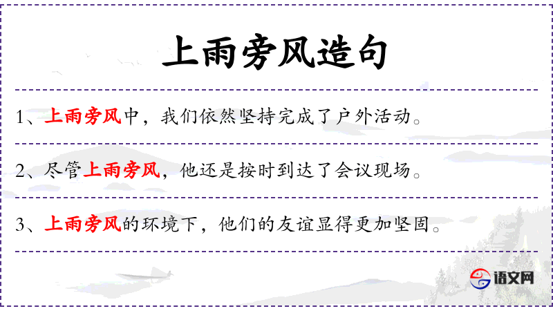 2. 【上雨旁风】 - 形容家里贫穷,房屋破旧。