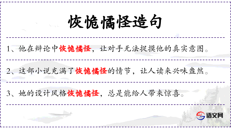 句子:“他在辩论中恢憰憰怪,让对手无法捉摸他的真实意图。”