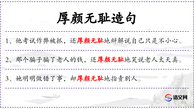 - 厚颜无耻:形容人不知羞耻。同义词:无耻、不要脸。