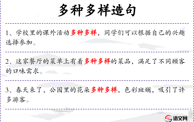 句子:“市场上的水果多种多样,有苹果、香蕉、橙子等等,非常新鲜。”