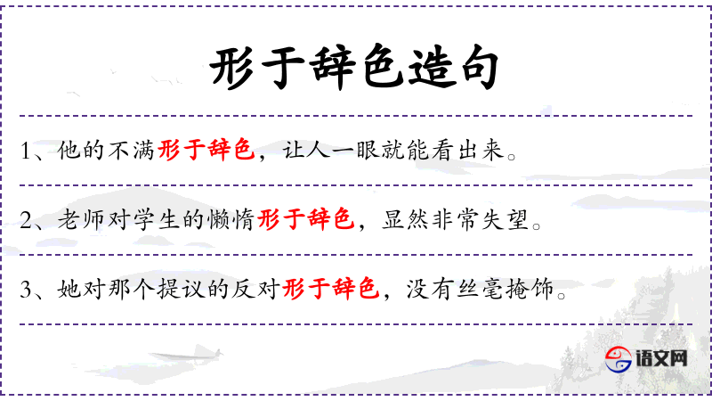 - 状语:形于辞色,没有丝毫掩饰