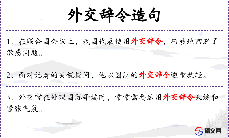 - 外交辞令:指在外交场合中使用的正式、含蓄或模棱两可的语言。