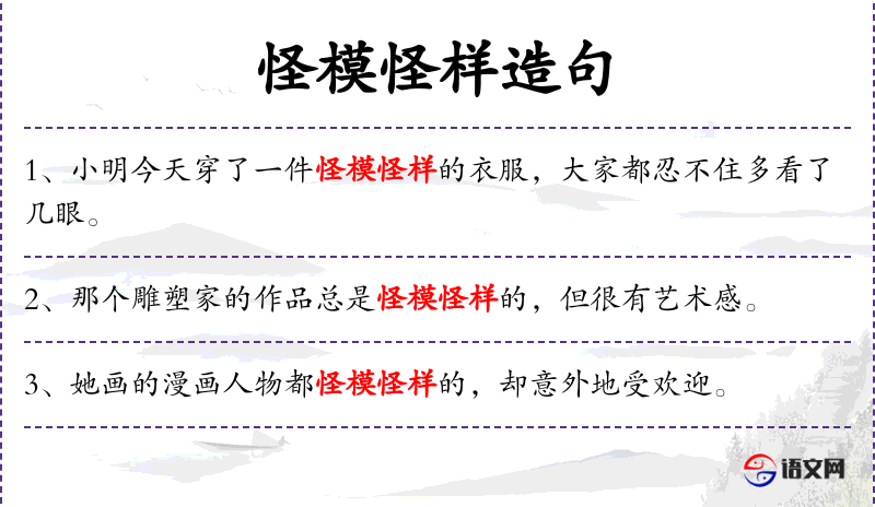- 怪模怪样:形容词短语,形容动作奇特、不寻常。